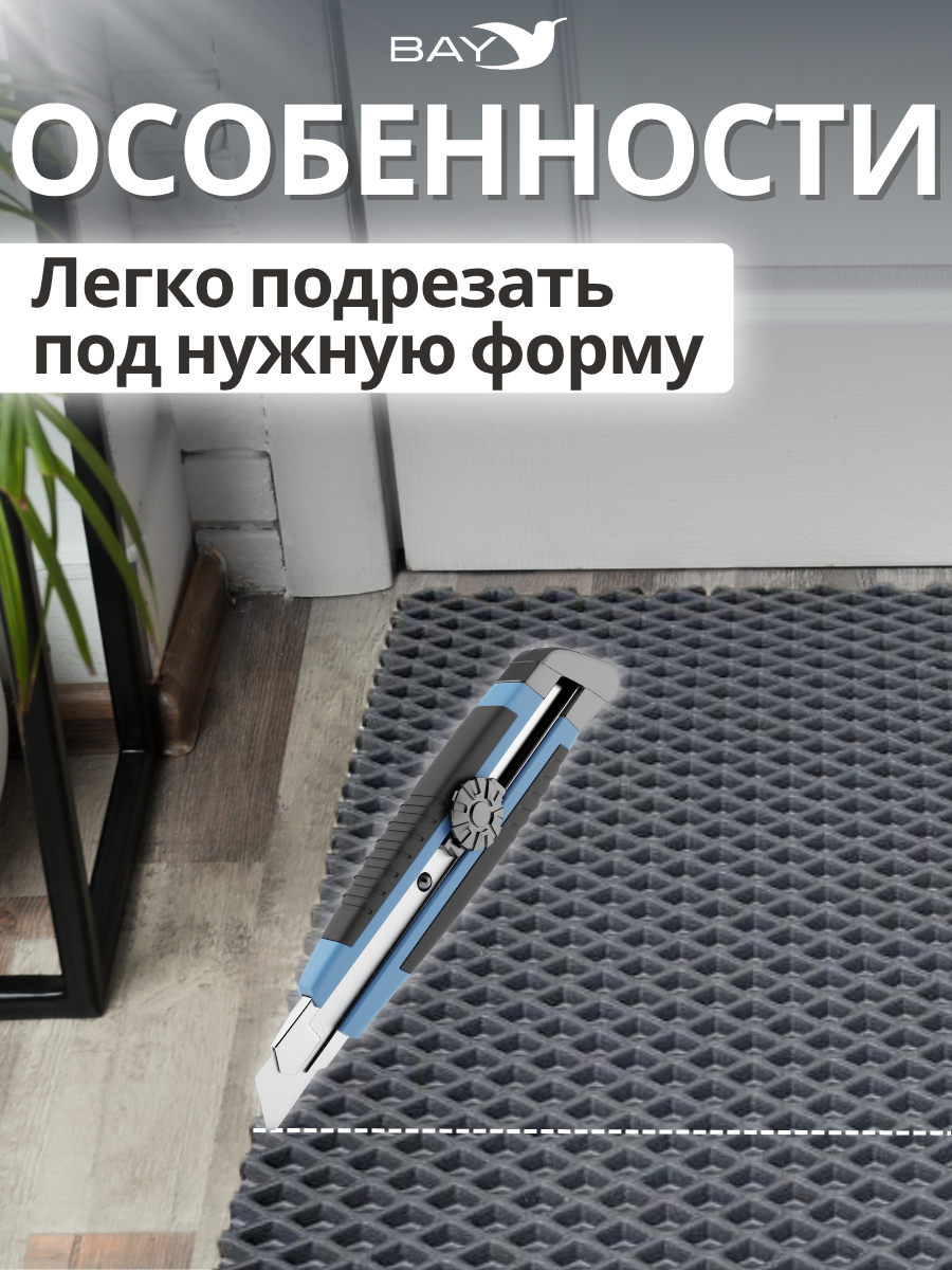 Eva коврик - это универсальные напольные покрытия из полимера EVA, которые можно использовать в прихожей, коридоре, на улице, лестничной площадке. Коврик универсальной расцветки, впишется в любой интерьер. За счет своей сетчатой структуры помогает песку и мусору оставаться в ячейках, защищая пол от загрязнения.