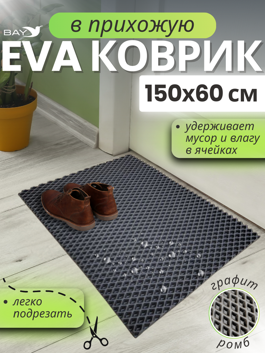 Eva коврик - это универсальные напольные покрытия из полимера EVA, которые можно использовать в прихожей, коридоре, на улице, лестничной площадке. Коврик универсальной расцветки, впишется в любой интерьер. За счет своей сетчатой структуры помогает песку и мусору оставаться в ячейках, защищая пол от загрязнения.