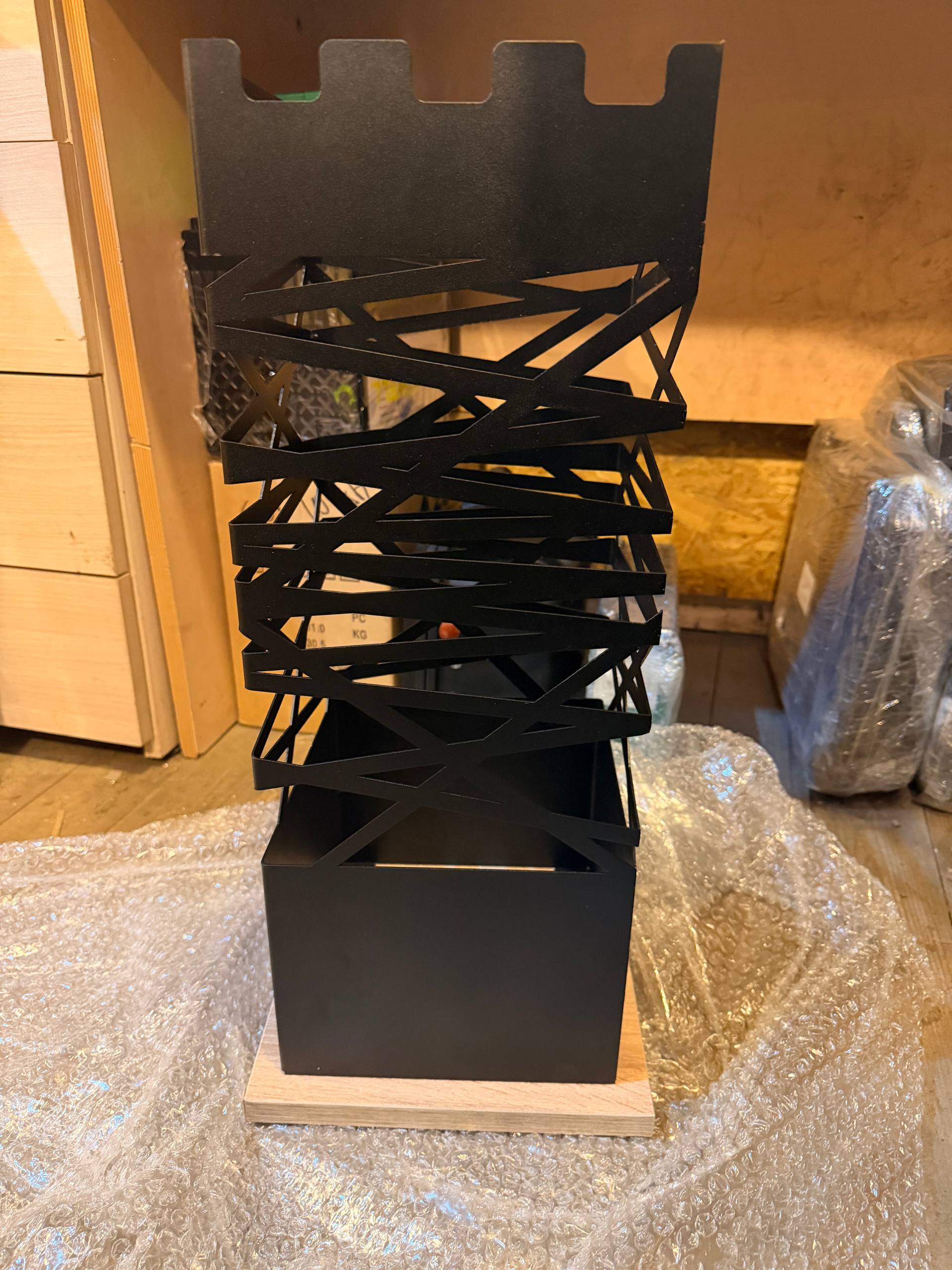 Декоративная зонтница - идеальное решение для хранения шатров, тентов и зонтов в прихожей. Эта стильная подставка сочетает в себе элементы ковки и Лофт - декор, делая ее прекрасным аксессуаром под любой интерьер. Металлическая коробка, стойка черного цвета вмещает в себя множество зонтов и создает организованный вид в уютной прихожей.