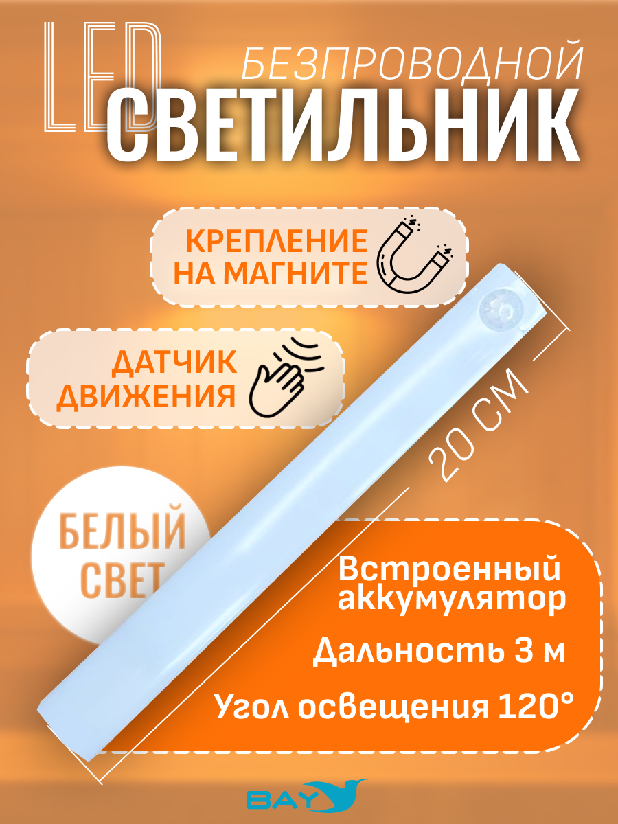 Светильник с датчиком движения на аккумуляторах для шкафа, 20 см