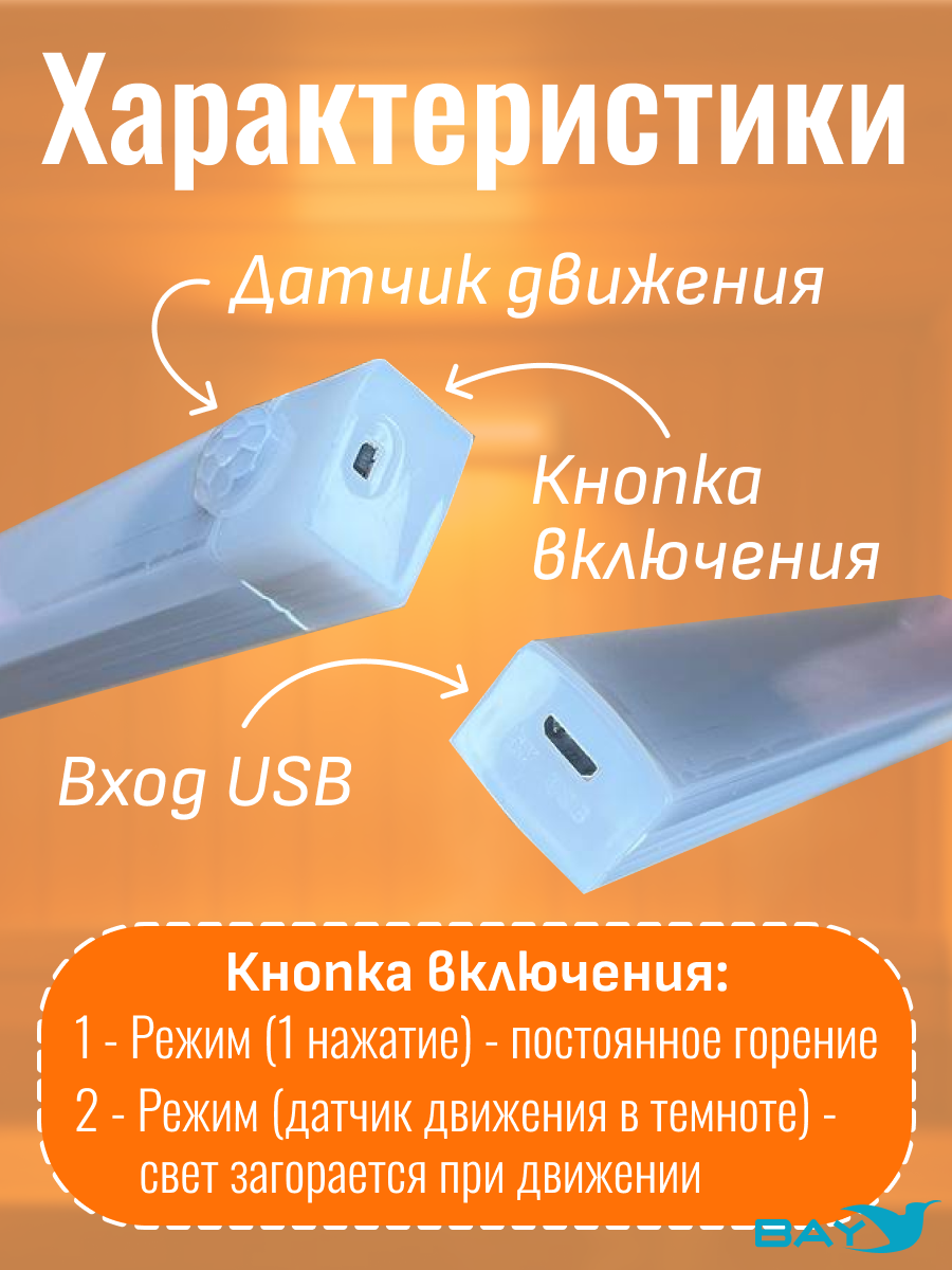 Универсальный светильник с датчиком движения — идеальное решение для освещения шкафов и мест, куда сложно установить традиционное освещение. Данный светильник длиной 20 см имеет компактный и стильный дизайн, который легко впишется в любой интерьер.