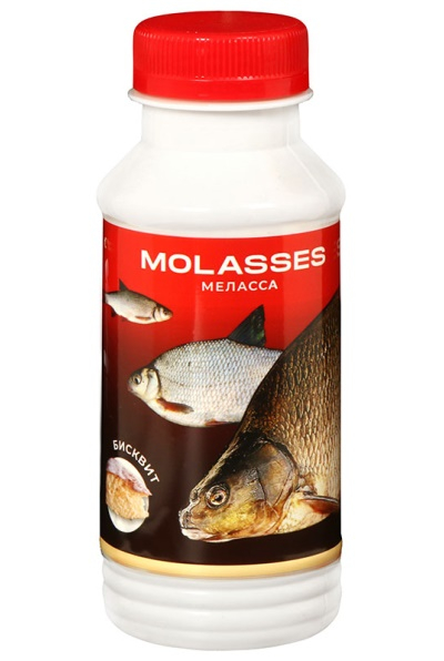 Меласса с ароматом бисквита. Перед применением продукт следует развести в воде для замеса прикормки. Один флакон содержит 250 г мелассы и рассчитан на 3-5 кг прикормки.