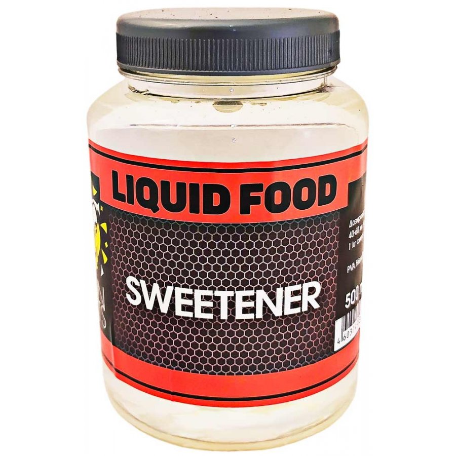 Sweetener - подсластитель в жидкой форме является отличным продуктом для возбуждения аппетита у карпов и других пресноводных рыб. Жидкий подсластитель относится к заменителю сахара, однако намного эффективней. В жидкую форму подсластителя входят несколько видов подсластителей, основным из которых является спленда. Благодаря гидрофильной основе жидкая форма обладает прекрасной растворимостью, даже в холодной воде. Подсластители придают привлекательность бойлам, а добавка в прикормочную смесь придаст ей насыщенность вкуса и возбуждающее действие. Кроме того, его молекулы обладают особым свойством стимулировать вкусовые рецепторы более длительное время и создавать за счет этого вкусовой след, который очень способствует привыканию в контексте продолжительного прикармливания.
