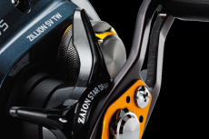 Daiwa 16 Zillion как видно из названия унаследовал третье поколение системы TW, система T-wing позволила объеденить преимущества мультипликаторных катушек оборудованных лесоукладывателем и лишенных его. Особенность системы – Т-образный лесоукладыватель, который прикрывается подвижной крышкой. В положении заброса крышка поднята и леска свободнее двигается по горизонтальному проему лесоукладывателя, что положительно влияет на дальность заброса. В положении подмотки шторка закрывается и леска проходит через узкий вертикальный проем лесоукладывателя. За счет небольшой его ширины достигается лучшее качество укладки лески на шпулю.