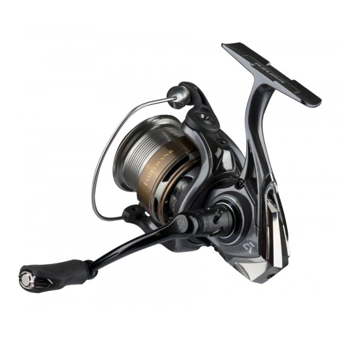 Новинка от Azura – катушки серии Fortran Neo будут прекрасным решением для легких и сверхлегких спиннинговых удилищ. Легчайший корпус и ротор из пластика GF+ с повышенным содержанием углеродного волокна позволили изготовить катушки, которые при размере 2500 могут устанавливаться на самые легкие снасти. Модернизированный кулисный механизм обеспечивает качественную укладку лески на точеную алюминиевую шпулю. Фрикцион Rapid Drag можно полностью затянуть менее чем за один оборот ручки – благодаря этому регулировка становится исключительно оперативной. Ручка катушки ввинчивается в ведущую шестерню (screw-in handle), что полностью исключает люфт в этом узле и повышает надежность. Неопреновый чехол, в котором поставляется катушка, снабжен отдельным карманом для ручки. Fortran Neo – облегченные катушки, оптимизированные для работы со сверхтонкими шнурами. Мы рекомендуем использовать их на удилищах сверхлегкого и легкого классов – вне зависимости от размера катушки.Характеристики Azura Fortran Neo:- Корпус и ротор из пластика GF+- 11 подшипников- Редукция: 5.2:1- Алюминиевая шпуля- Фрикцион Rapid Drag - Моментальный антиреверс- Кулисный механизм укладки лески.