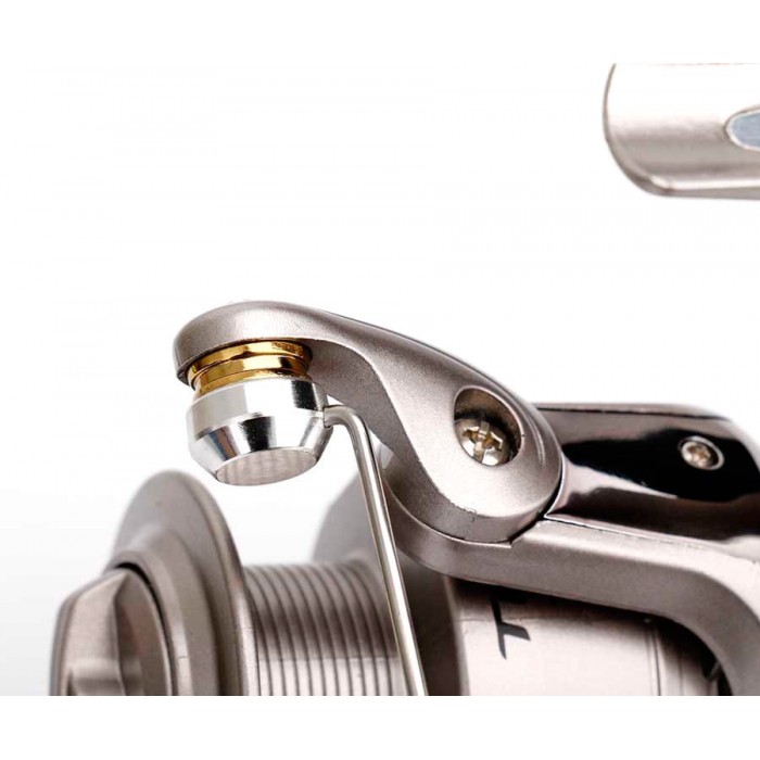 Надежная, абсолютно функциональная, но при этом максимально доступная безинерционная катушка. Имеет прочный, надежный, долговечный механизм, отличающийся предельной простотой. Ролик лесоукладывателя, покрытый нитридом титана, предполагает эксплуатацию не только с монолеской, но и со шнуром. В легкой пластиковой шпуле установлен многодисковый фрикционный тормоз, отличающийся мощностью и плавной регулировкой. Благодаря балансировке ротора при вращении катушки отсутствуют какие-либо вибрации, которые могут повлиять не только на комфорт ловли, но и на управление снастью. Дискретный антиреверс имеет минимальный обратный ход. Одна из важных особенностей всех моделей серии – исключительно малый вес, не характерный для катушек данной ценовой категории, благодаря чему они хорошо сочетаются с современными карбоновыми удилищами. Катушки предназначены, прежде всего, для использования на спиннинговой снасти, но могут использоваться и на поплавочной снасти, модель размером 5000 является прекрасным выбором для фидерной ловли. Передний фрикцион. Балансировка ротора. 1 шарикоподшипник. Прочный пластиковый корпус. Кулисный механизм, обеспечивающий качественную укладку лески. Дискретный антиреверс. Ролик лесоукладывателя, покрытый нитридом титана.