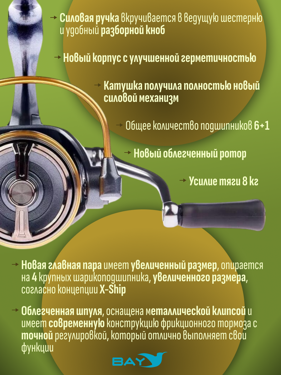 - Облегченная шпуля, оснащена металлической клипсой и имеет современную конструкцию фрикционного тормоза с точной регулировкой, который отлично выполняет свои функции.