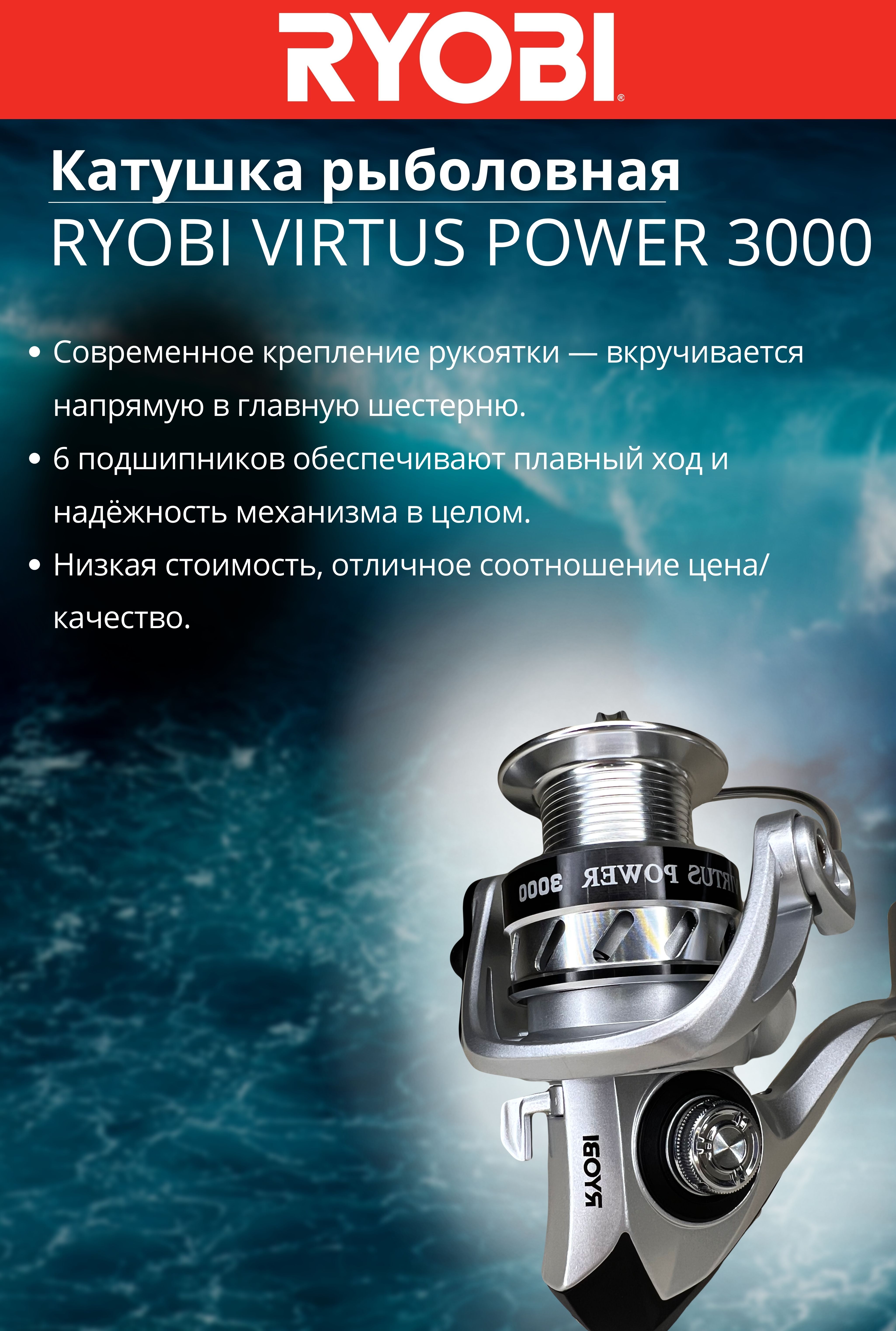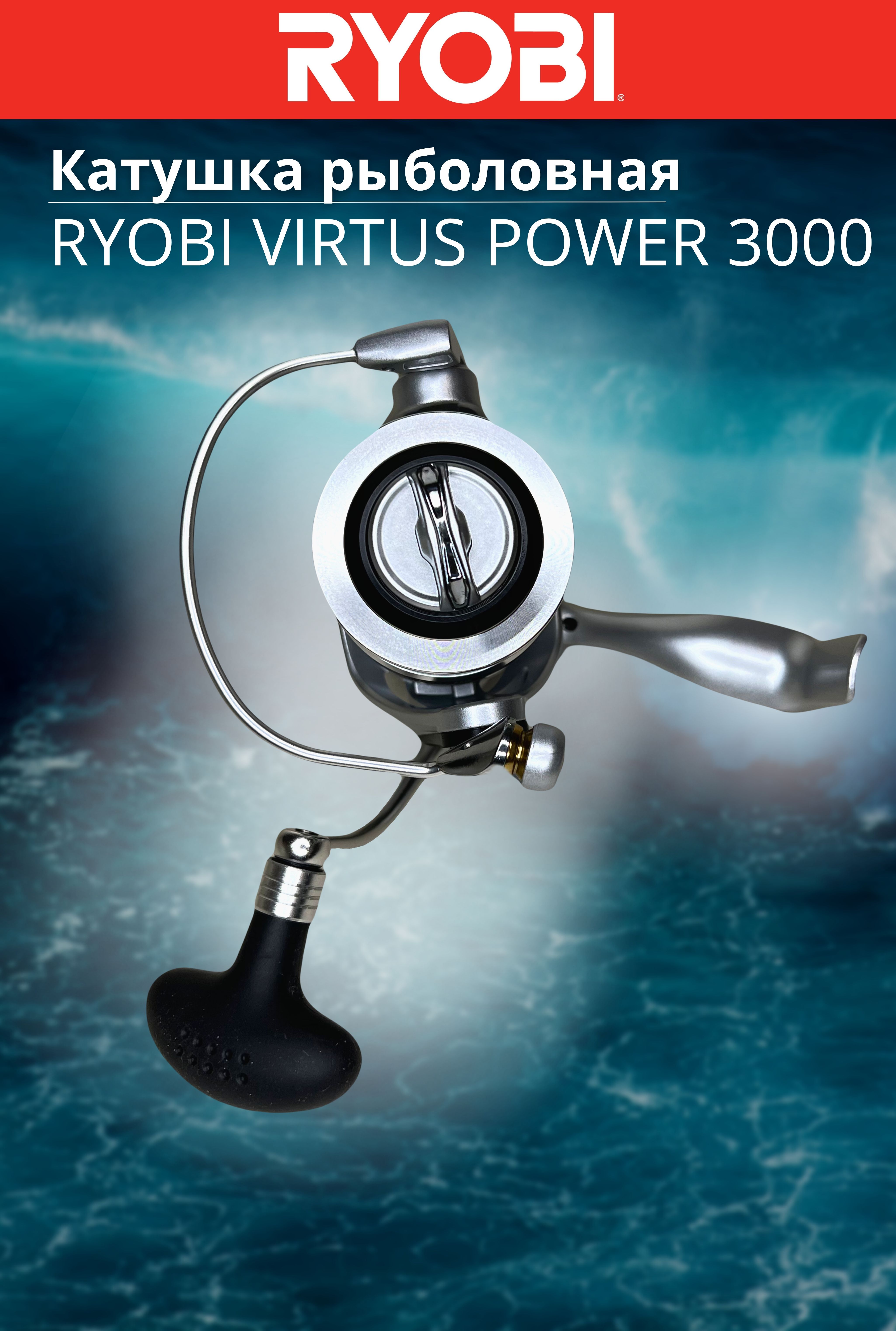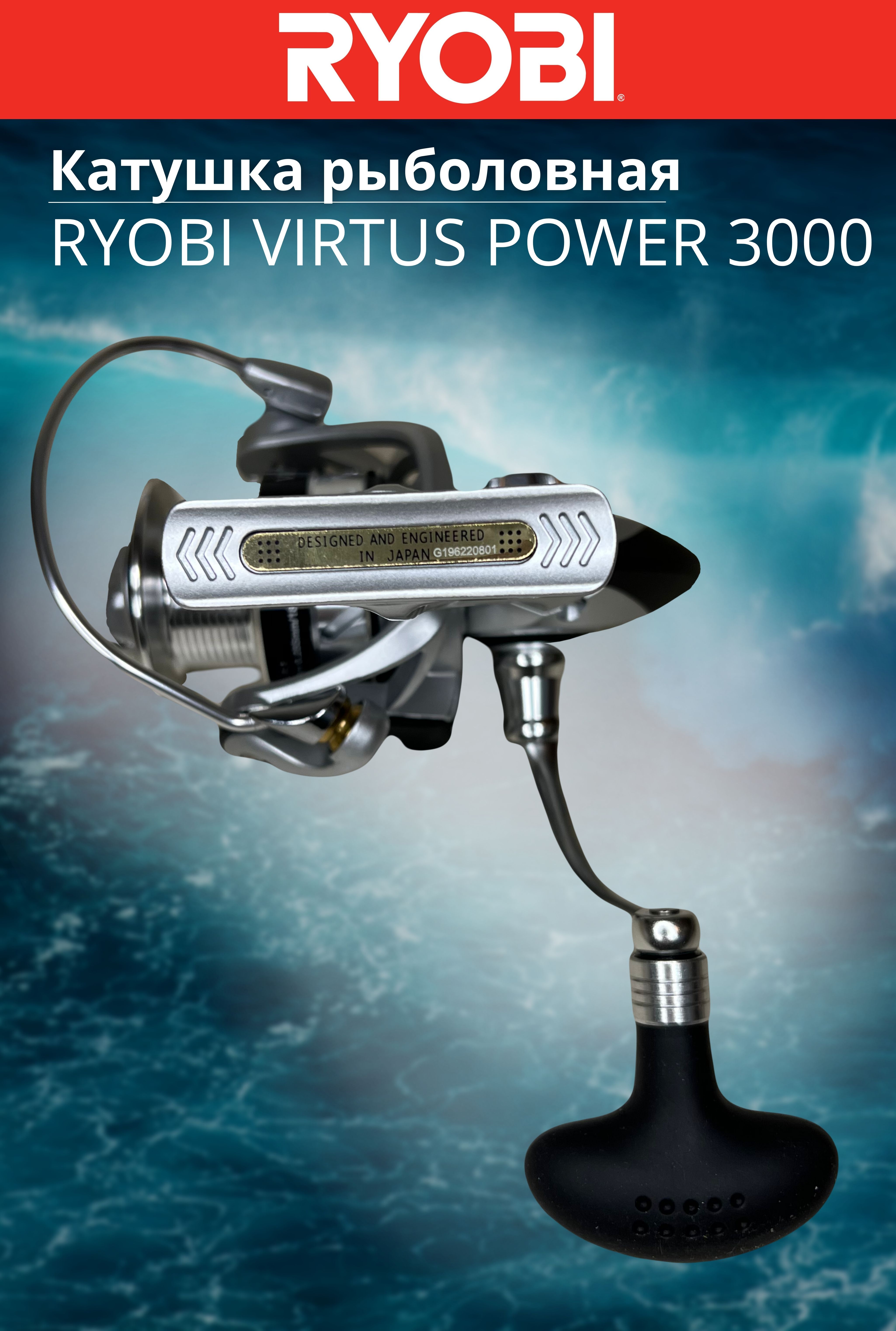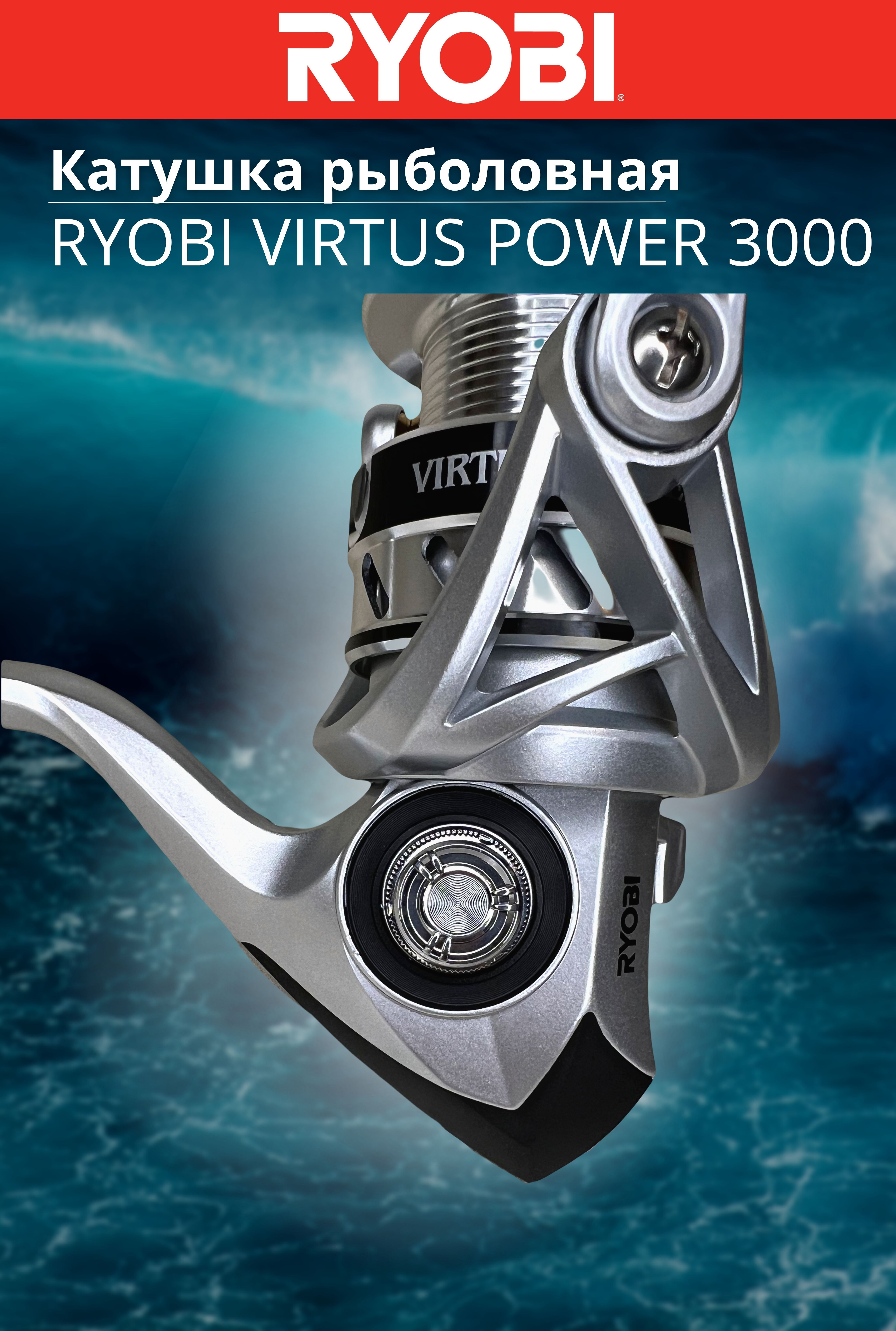 Катушка Ryobi Virtus Power получила новый, усовершенствованный механизм и современный дизайн. В конструкцию добавлено два дополнительных шарикоподшипника, теперь их стало 6+1. Рукоятка вкручивается напрямую в главную шестерню — это снизило люфт, повысило надёжность и срок эксплуатации. Virtus Power имеет приятный внешний вид и отличные характеристики: плавный ход, минимум люфтов, мощный фрикцион. Несмотря на все улучшения, стоимость сохранилась на низком уровне.