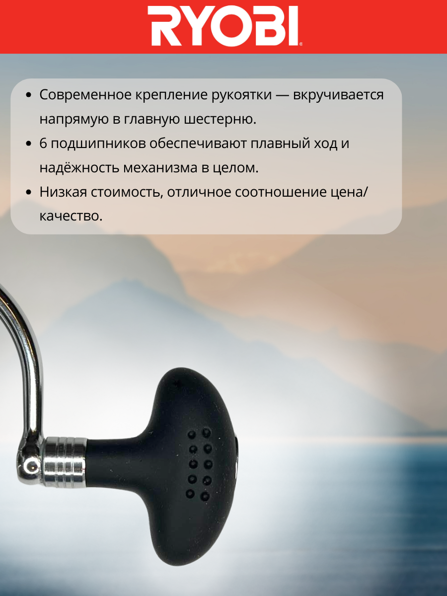 Катушка Ryobi Virtus Power получила новый, усовершенствованный механизм и современный дизайн. В конструкцию добавлено два дополнительных шарикоподшипника, теперь их стало 6+1. Рукоятка вкручивается напрямую в главную шестерню — это снизило люфт, повысило надёжность и срок эксплуатации. Virtus Power имеет приятный внешний вид и отличные характеристики: плавный ход, минимум люфтов, мощный фрикцион. Несмотря на все улучшения, стоимость сохранилась на низком уровне.