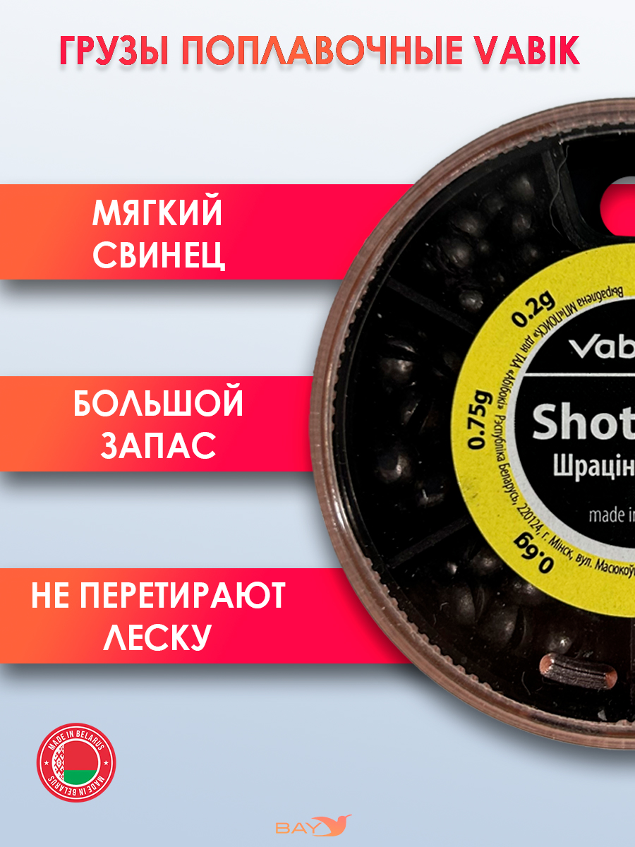 Наборы грузиков-дробинок любительского класса, изготовленные из мягкого свинца. Продаются в двух вариантах: большой набор (развесовка: 0.2 г, 0.3 г, 0.4 г, 0.5 г, 0.75 г, 1 г; общий вес – 100 г) и малый (развесовка: 0.2 г, 0.3 г, 0.4 г, 0.5 г, 0.6 г, 0.75 г; общий вес – 70 г).