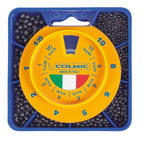 Colmic Mascotte Sile Fine представляет собой набор дробинок разных диаметров и веса. Основное назначение – огрузка для поплавков при ловле маховой и болонской удочками. Отличается точной калибровкой дробинок. Общий вес 200 гр.