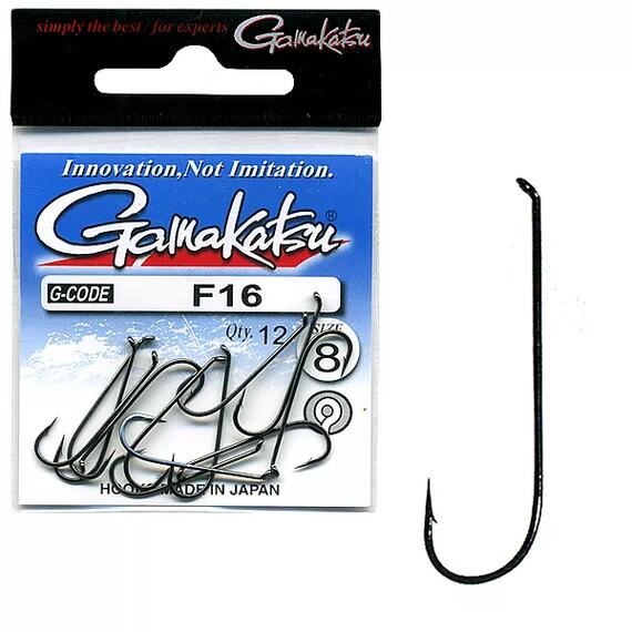 Gamakatsu F16 – серия высококачественных специализированных крючков, предназначенных для использования в нахлыстовой ловле. Имея длинное цевье, крючок идеально подходит не только для вязания стримеров и длиннотелых мух, а и для вынимания его из пасти хищника. Gamakatsu F16 изготовлен из довольно толстой тонкой проволоки и, благодаря кованной структуре, характеризуется высокой прочностью и стойкостью к разгибанию. Для длительного сохранения остроты жала оно было подвержено химической заточке. Следует еще отметить и то, что конструкция крючка делает его очень удобным для использования в спиннинговой ловле, где ими практично оснащать такие типы силиконовых приманок как черви и слаги.