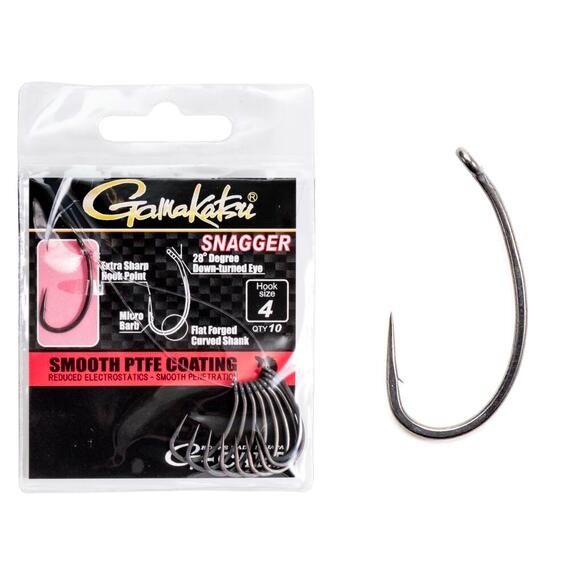 Особенность модели карповых крючков Gamakatsu G-Carp Snagger заключается в особом угле кольца из-за которого смонтированный крючок занимает в воде правильное положение и всегда попадает в нижнюю губу. Таким образом отпадает необходимость в использовании выравнивающих систем. Высокий уровень прочности и надежности достигается из-за особой кованой формы поддева, равномерно распределяющей нагрузки. Крючок Gamakatsu G-Carp Snagger снабжен микробородкой, легко пробивающей губу и так же легко извлекаемой из нее.