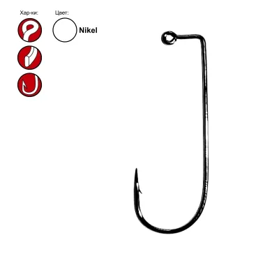 Стандартный крючок для изготовления джиг-головок. Произведен из углеродистой закаленной стали. Имеет загиб цевья 90 градусов. Химическая заточка жала. Тонкая проволока, из которой он сделан, позволяет применять мягкие приманки без риска испортить их.