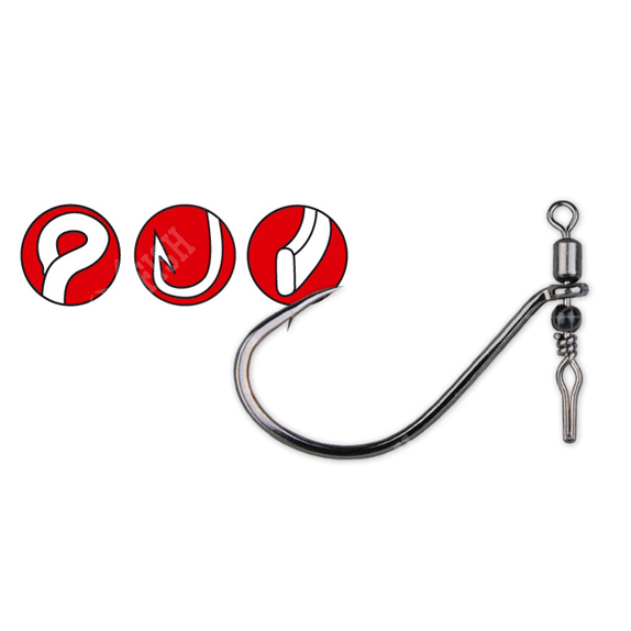 Новые революционные крючки от японской компании Gamakatsu. Имеют шарнирное соединение, благодаря которому, крючок поворачивается на 360°. Супер острое жало крючка имеет химическую заточку.