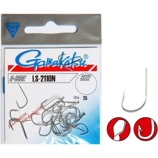 Gamakatsu LS-2110 – специализированная серия крючков для фидерной ловли леща и густеры. Имеют довольно острые перегибы, бородку и крепятся к леске с помощью лопатки. Заточка жала не тупится даже при продолжительной ловле благодаря использованию надежной проволоки, что особенно важно при ловле у дна. Крючок Gamakatsu LS-2110 способен выдержать нагрузку даже очень крупной рыбы благодаря мощному цевью.