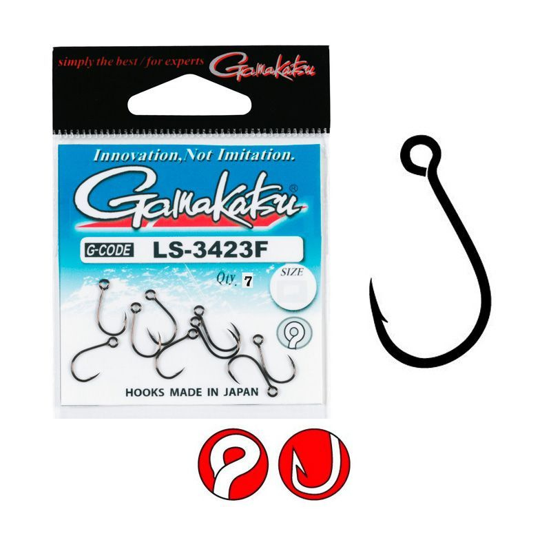 Крючки Gamakatsu LS-3423F. Крючок с кольцом, коротким цевьем и плавным изгибом. Серия крючком Гамакатсу LS-3423F предназначена для оснащения блесен или воблеров. Имеет специальный профиль для мгновенного проникновения и надежной фиксации.