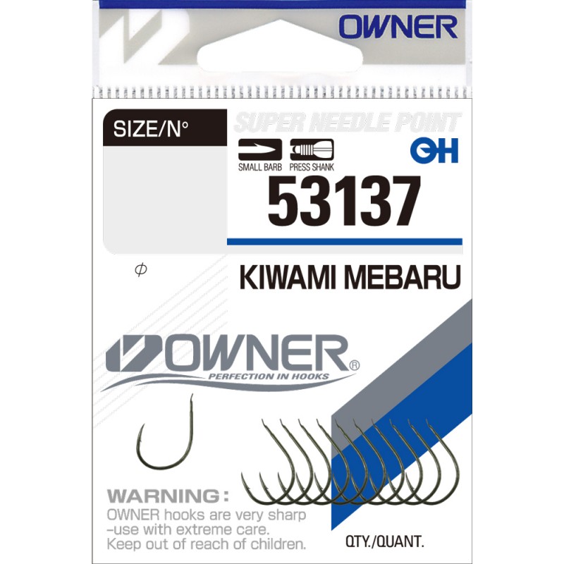 Owner Kiwami Mebaru 53137 – серия тонких одинарных крючков, изготовленных из высококачественной углеродистой стали. Крючки Owner 53137 имеют широкий округлый загиб, кованый поддев, загнутое в сторону цевья длинное жало, короткое цевье с удобной для привязывания лопаткой и защитное покрытие зеленого цвета. Owner Kiwami Mebaru с успехом используются в донных и поплавочных оснастках для ловли крупной рыбы на объемные насадки животного и растительного происхождения. Размерный ряд крючков в серии: от №9 до №3. Острейшей заточки жало и аккуратная бородка гарантируют эффективную подсечку и уверенное удержание клюнувшего трофея, с минимальным нанесением ему травм.