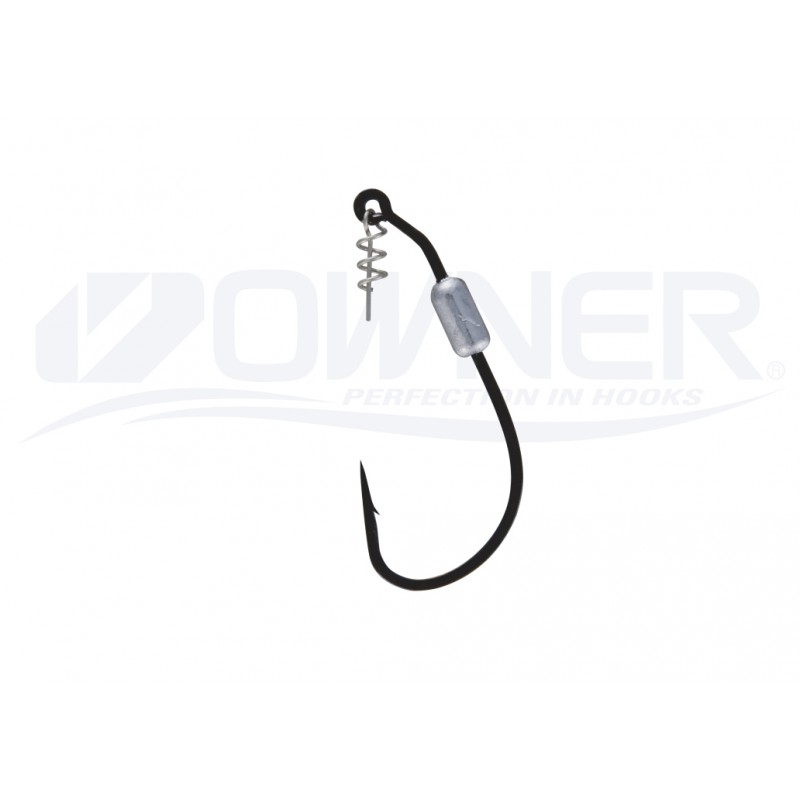Owner Weighted Twist Lock BC 5130W – Принципиально от классических офсетников эта серия крючков, получившая наименование Twist LOCK™, отличается тем, что не имеет привычной "ступеньки" – двойного изгиба цевья. Вместо нее для фиксации мягких приманок предусмотрено приспособление в виде короткой спиральки с направляющим стержнем Centering Pin Spring (CPS), свободно закрепленной в колечке на конце цевья. По форме крючки этой серии отличаются несколько большей чем обычно, шириной поддева и достаточно коротким, чуть отогнутым внутрь цевьем, что оптимально для использования в качестве приманок "толстых" пластиковых червей или твистеров. Идеальны для каролинской, техасской и дроп-шот оснасток. Имеют самое стойкое покрытие Black Chrome™ и острейшую заточку жала Super Needle Point.