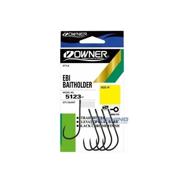 Owner Ebi Baitholder 5123 – серия мощных и прочных крючков, изготовленных из высококачественной углеродистой стали. Крючки Owner 5123 имеют полукруглый загиб, кованый поддев, отогнутое в сторону цевья хищное жало, удлиненное цевье с двумя насечками, удобное для привязывания лески колечко и защитное покрытие черного цвета. Крючок Owner Ebi Baitholder рассчитан на поимку крупной рыбы, с успехом используется во всевозможных донных и морских оснастках. Насечки с обратной стороны цевья позволяют надежно зафиксировать животные насадки. Острейшее жало с заточкой Super Needle Point и классическая бородка гарантируют эффективную подсечку и уверенное удержание любой клюнувшей рыбы.