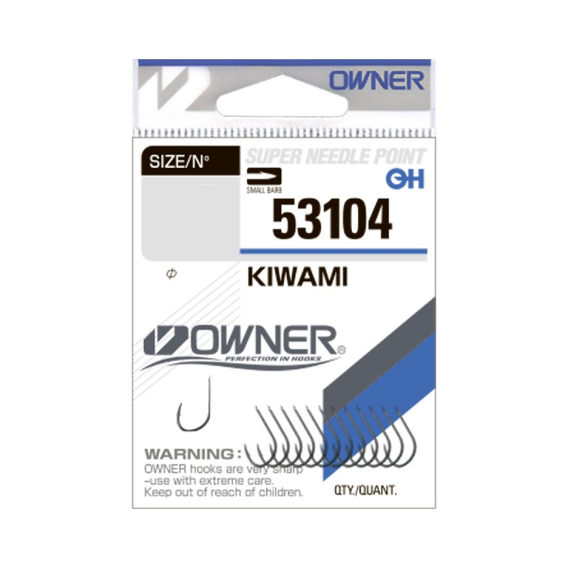Owner Kiwami 53104 - универсальные крючки для оснащения поплавочных удочек. Более мелкие размеры с успехом можно использовать для самых деликатных насадок (мотыль, ручейник, поденка), крупные – для червя, пучка опарышей, зерен пшеницы, перловки, гороха. Имеют короткое цевье с круглым загибом, аккуратную лопаточку для привязки, не сильно травмирующую рыбу бородку.