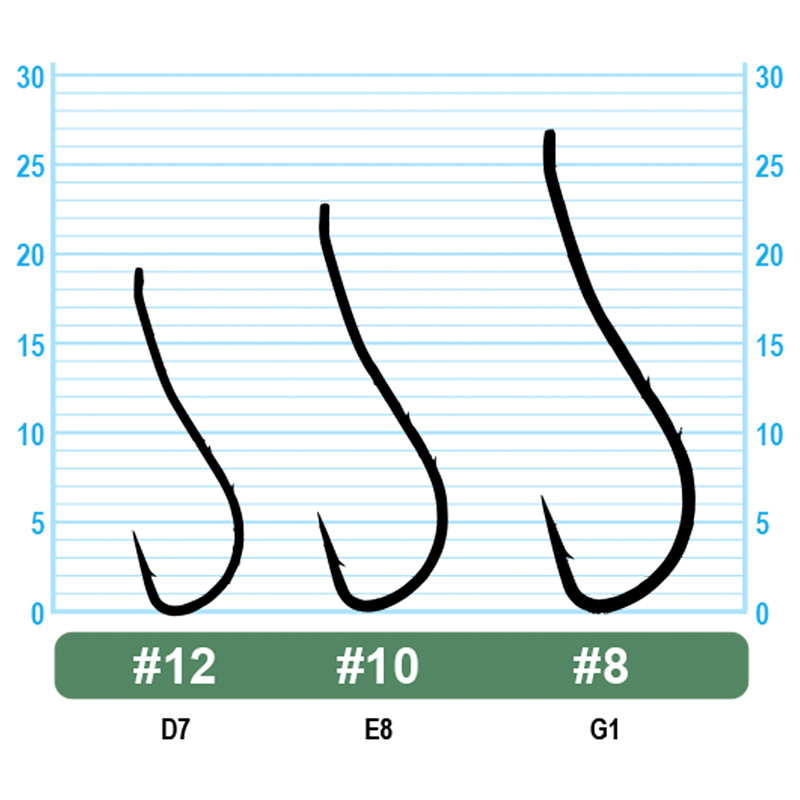 Круглый загиб, удлиненное и изогнутое внутрь цевье с двумя миниатюрными насечками на нем обеспечивают крючкам данной серии равномерное распределение насадки и предотвращают ее сползание. Кроме того, даже самая "смышленная" рыба не в состоянии безнаказанно стащить приманку с крючка. Крючки предназначены для широкого использования в различных поплавочных оснастках.