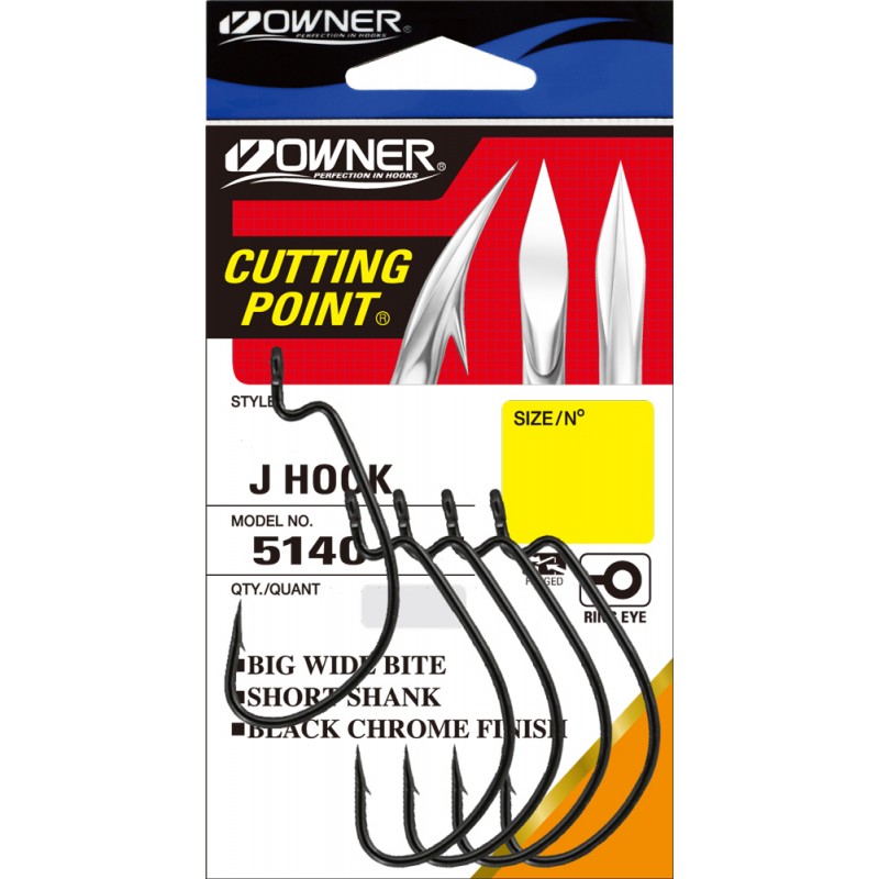 Крючки Owner J-Hook 5140 — характеризующаяся широкой формой, закругленным, чуть скошенным загибом и достаточно коротким, отогнутым на 30 градусов, цевьем с классической Z-образной ступенькой. Рекомендуется к использованию в каролинской и техасской оснастках, преимущественно для ловли на пластиковые ящерицы, лягушки и другие объемные приманки.