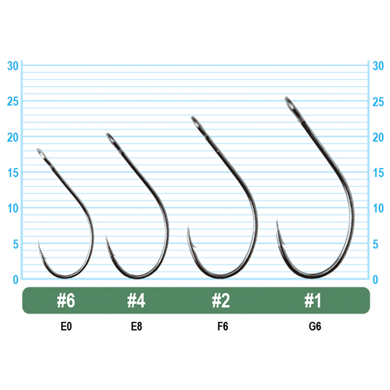 Эти крючки, выполненые из толстой проволоки и наделенные большей прочностью, рассчитаны для оснащения приманок (воблеры, вращающиеся и колеблющиеся блесны) крупного размера.