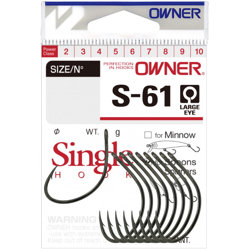 Owner S-61 Single Hook 51576 – серия специальных спиннинговых крючков для оснащения вращающихся и колеблющихся блесен, приманок для отвесного блеснения, спиннеров и прочих приманок. Крючки Owner 51576 характеризуются крепежным колечком большого диаметра (под заводное кольцо), чуть скошенным округлым загибом, кованым поддевом, нормальной длины цевьем, загнутым внутрь хищным жалом и миниатюрной бородкой. Owner S-61 имеют стойкое к коррозии покрытие Black Chrome. Их отличает повышенная прочность и надежность при вываживании рыбы. Острейшее жало с идеальной заточкой и небольшая бородка гарантируют эффективное засечение и надежное удержание рыбы, не нанося ей существенных повреждений.