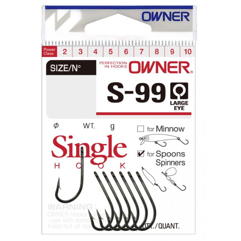 Owner S-99 Single Hook 51570 – серия специальных спиннинговых крючков для оснащения летних и зимних блесен, спиннеров и прочих приманок. Также эти крючки находят свое применение в джиговой ловле, поскольку прекрасно подходят для монтажа на «ушастое» грузило. Крючки Owner 51570 характеризуются крепежным колечком большого диаметра (под заводное кольцо), широким округлым загибом, кованым поддевом, нормальной длины цевьем, прямым жалом и обычной величины бородкой. Owner S-99 имеют стойкое к коррозии покрытие Black Chrome. Их отличает повышенная прочность и надежность при вываживании рыбы. Острейшее жало с идеальной заточкой и зацепистая бородка гарантируют эффективное засечение и надежное удержание любого трофея.