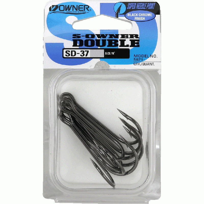 Owner SD-37 5671 – серия мощных двойных крючков, характеризующаяся широкой формой поддева, круглым загибом, длинным цевьем и защитным покрытием темного цвета. Серию двойников Owner 5671 рекомендуется применять в джиговых и прочих оснастках, для ловли на объемные приманки: пластиковые лягушки, толстотелые черви, твистеры, виброхвосты. Острейшие жала Owner SD-37 и нормальной величины бородки гарантируют эффективную подсечку и уверенное удержание любой клюнувшей рыбы.