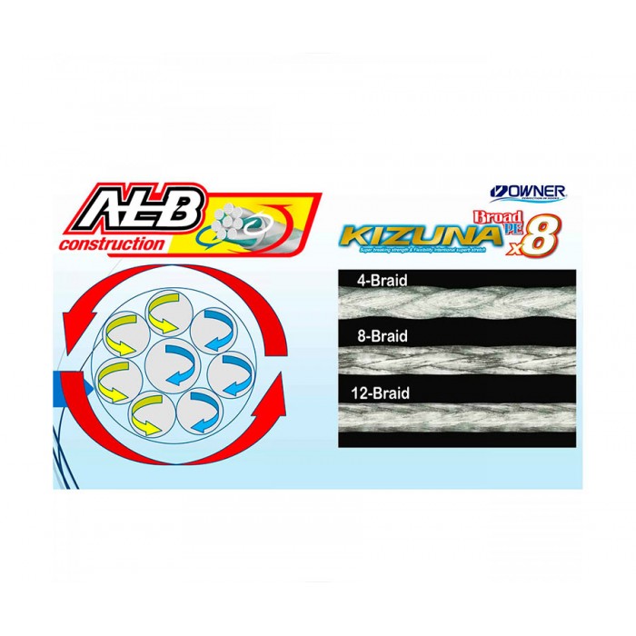 К сезону 2020 года компания Owner представила плетеный шнур высочайшего качества – Kizuna Broad PE x8. Инновационная технология плетения Anti Loosen Braided Construction позволила достичь невероятно гладкой поверхности и минимального сопротивления шнура во время заброса. Чрезвычайно прочные микроволокна Izanas обеспечили шнуру Owner Kizuna Broad PE x8 повышенную устойчивость к истиранию и деформации. Также уменьшился его вес, что положительно повлияло не только на дальность, но и на точность заброса. Передовая технология плетения ALB из 8 микроволокон сделала этот шнур универсальным: он может использоваться как в спиннинговой, так и в морской ловле. Широкий диапазон диаметров позволяет легко подобрать Kizuna Broad x8 под ваши условия ловли. Выпускается в наиболее востребованных размотках и цветовых решениях. Характеристики:- Высочайшее качество материала Izanas PE- Уникальная технология восьмижильного плетения- Круглое сечение- Самый высокий показатель прочности на узлах и износоустойчивости- Увеличение дальности заброса- Долговечность- Экологически чистый продукт: при сжигании вредные вещества не выделяются- 100% сделано в Японии