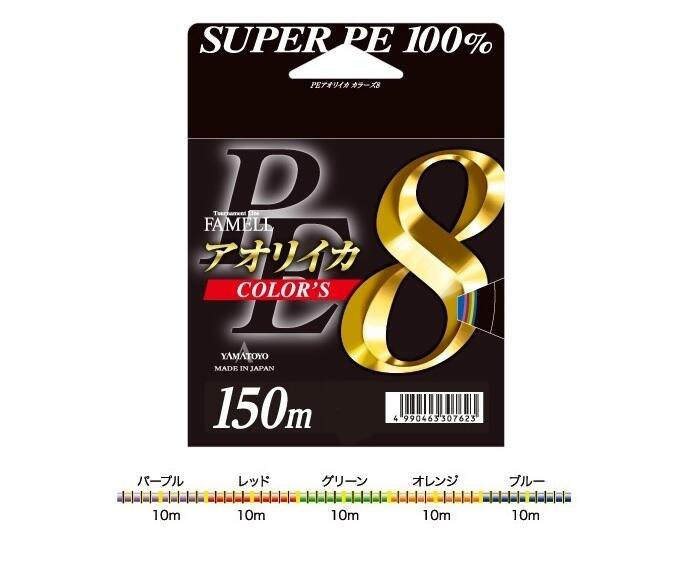 Плетеные шнуры Aoriika Colors - это новинка от компании Yamatoyo в сфере кальмаровых шнуров. Кальмаровые шнуры обладают повышенной устойчивостью к абразиву, а потому вы сможете без труда ловить рыбу в самых затрудненных условиях. Шнур маркерный, и каждые 10 метров цвет меняется, также присутствуют метки каждый метр и пять метров соответственно. В серии присутствует как четырех, так и восьмижильная вариация, которые отличаются своей мягкостью и разрывной нагрузкой.