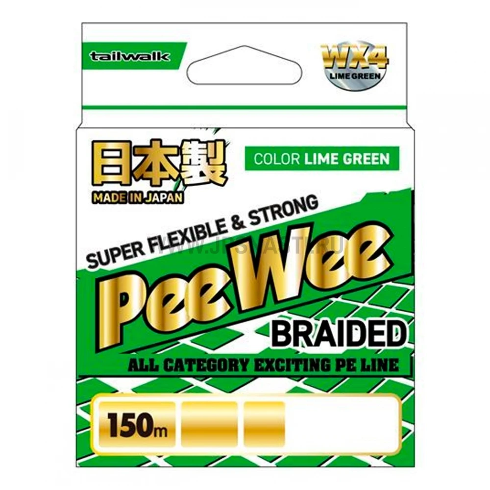 PeeWee WX4 Lime Green - плетеный шнур от японского бренда Tailwalk. 4-х жильный шнур PeeWee WX4 Lime Green имеет повышенную стойкость к трению и плотное плетение.