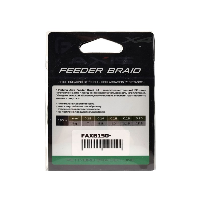 Шнур F-FISHING Axis Braid PE X4 Feeder 150м Grass Camo 0,12мм 7кг/15lb