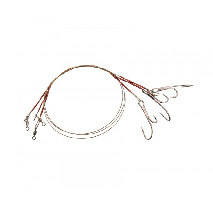 Поводки из семижильного стального тросика, оснащенные вертлюжками и специальными двойниками, состоящими из двух крючков разной длины, с разной шириной поддева. Предназначены для использования в оснастках при ловле на живца. Поводки не подвержены коррозии, проволочные бандажи на петлях отличаются надежностью и аккуратностью.Тип — плетеный. Количество в упаковке — 3 шт. Цвет — Brown.