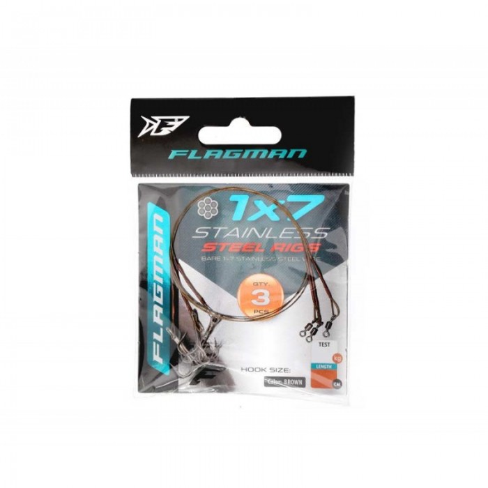 Поводки из семижильного стального тросика, оснащенные вертлюжками и тройниками. Предназначены для использования в оснастках при ловле на живца. Поводки не подвержены коррозии, проволочные бандажи на петлях отличаются надежностью и аккуратностью. Благодаря темному покрытию такой поводок практически незаметен в толще воды. Тип — плетеный. Количество в упаковке — 3 шт. Цвет — Brown.