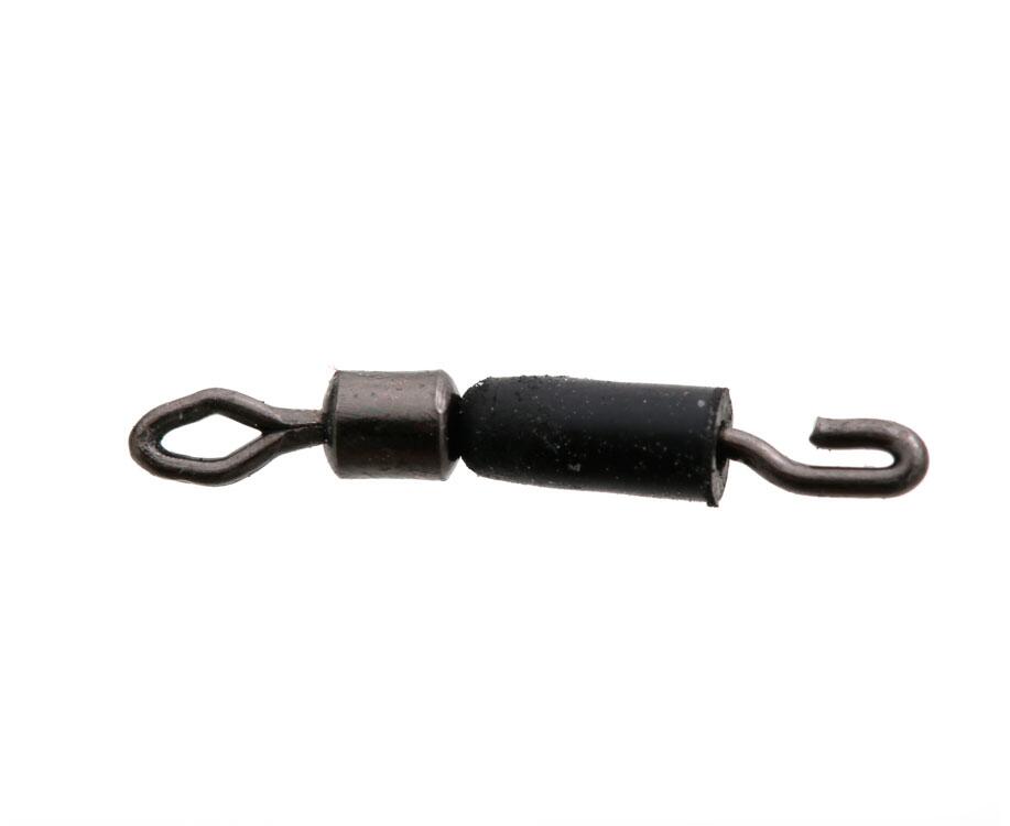 Вертлюг Quick Change «быстросъем» с резиновым фиксатором изготовлен из высококачественной нержавеющей стали. Идеален для фидерных и карповых монтажей. Темное матовое покрытие надежно защищает металл и не допускает бликов, отпугивающих рыбу.