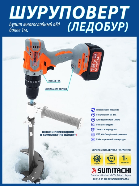 Дрель-шуруповерт SUMITACHI для ледобура на зимней рыбалке