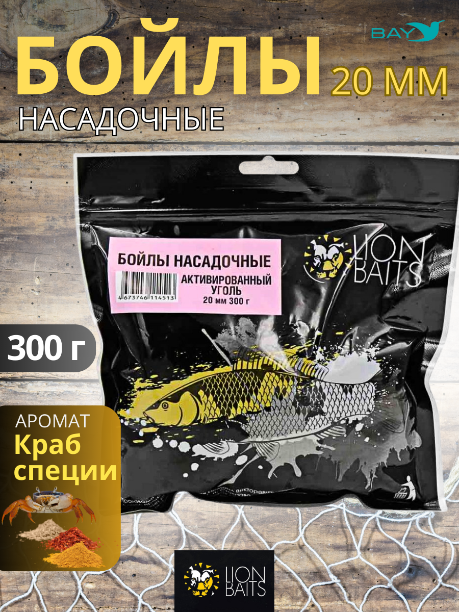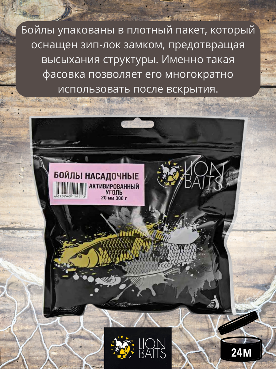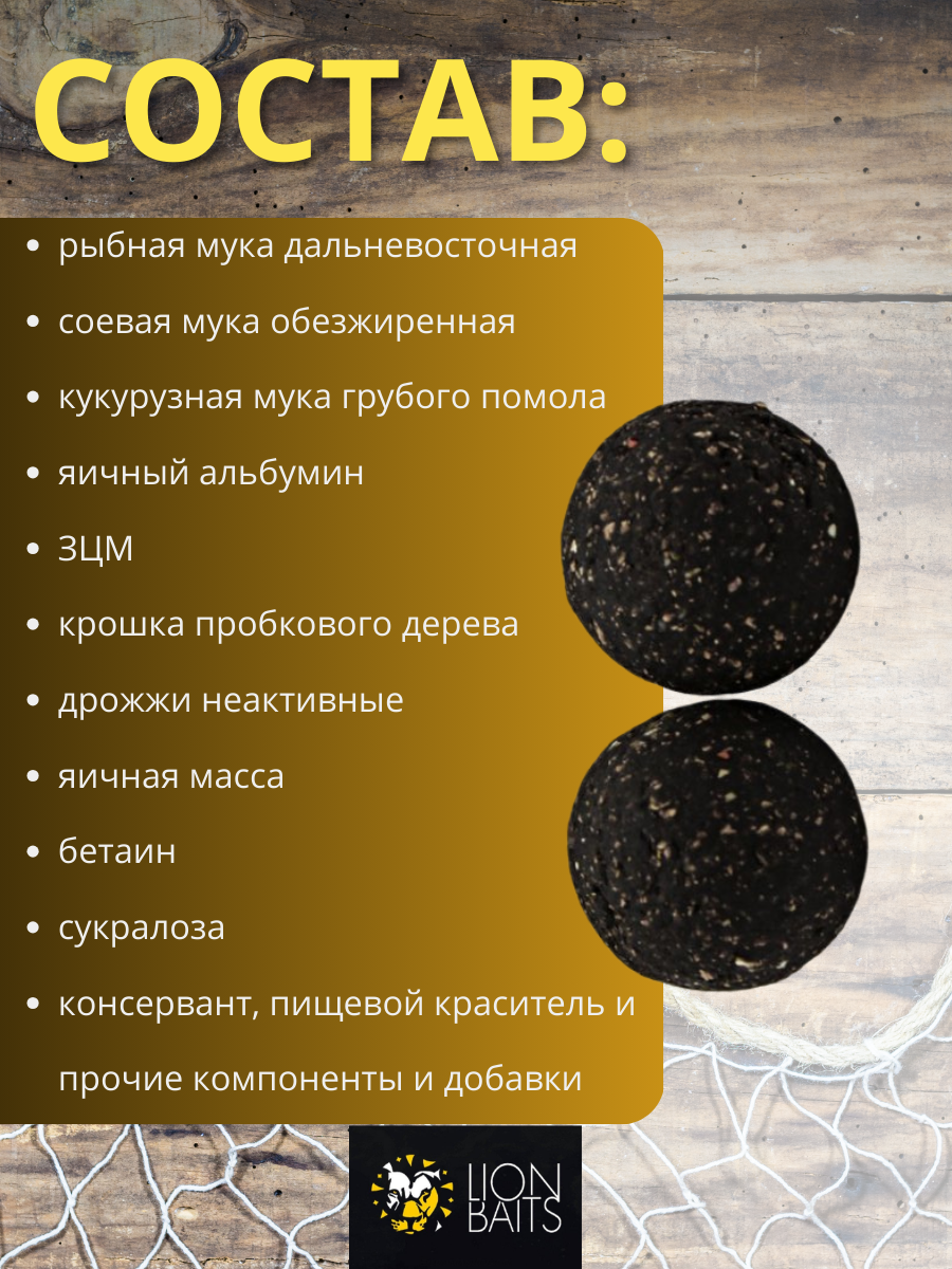 Lion Baits Бойлы баланс 20мм "Активированный уголь" 300гр (кальмар + смесь специй)