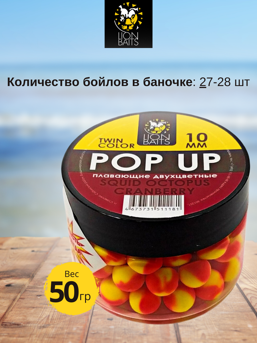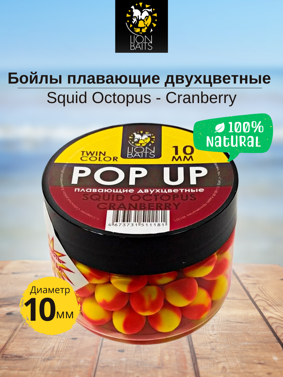 Lion Baits Бойлы плавающие двухцветные (Pop-Up) Twin Color "Squid-Octopus - Cranberry" 10 мм