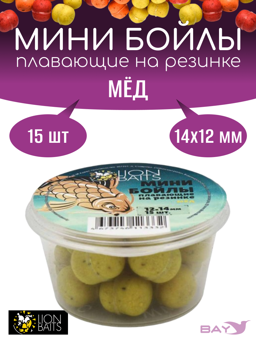 Lion Baits Мини бойлы плавающие на резинке "Мед" 12х14мм (15шт)