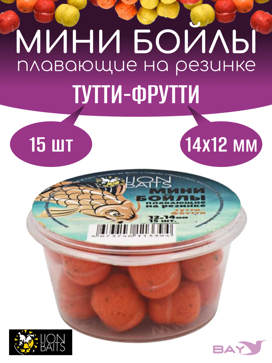 Lion Baits Мини бойлы плавающие на резинке "Тутти-Фрутти" 12х14мм (15шт)