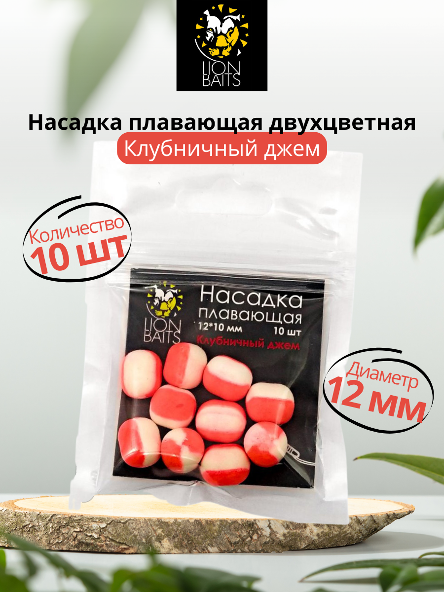 Lion Baits Насадка плавающая двухцветная "Клубничный джем" 12х10 мм (10 шт)