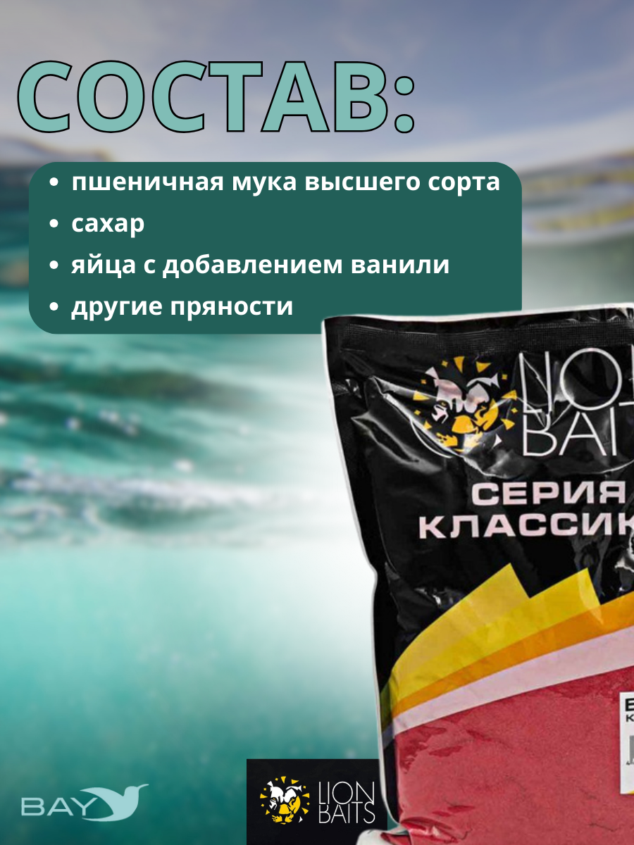 Бисквит - кондитерское тесто, приготовленное из пшеничной муки высшего сорта, сахара, яиц с добавлением ванили и других пряностей. Бисквит по праву называют королем выпечки, однако его питательные, вкусовые и физические свойства, отлично подходят и для использования в рыболовных прикормках. Молотый бисквит (крошка) активно используется рыбаками как добавка в состав смеси для прикармливания, в зависимости от условий рыбалки и вида рыбы, количество бисквитной крошки может варьироваться от 10 до 45%. Как показывает практика, использование бисквитной крошки в качестве компонента прикормочной смеси, позволяет эффективно привлечь рыбу к месту ловли. Увлажнённый бисквит в составе прикормки, попадая в воду, начинает медленно растворяться, образуя облачность, которая способствует быстрому привлечению рыбы.