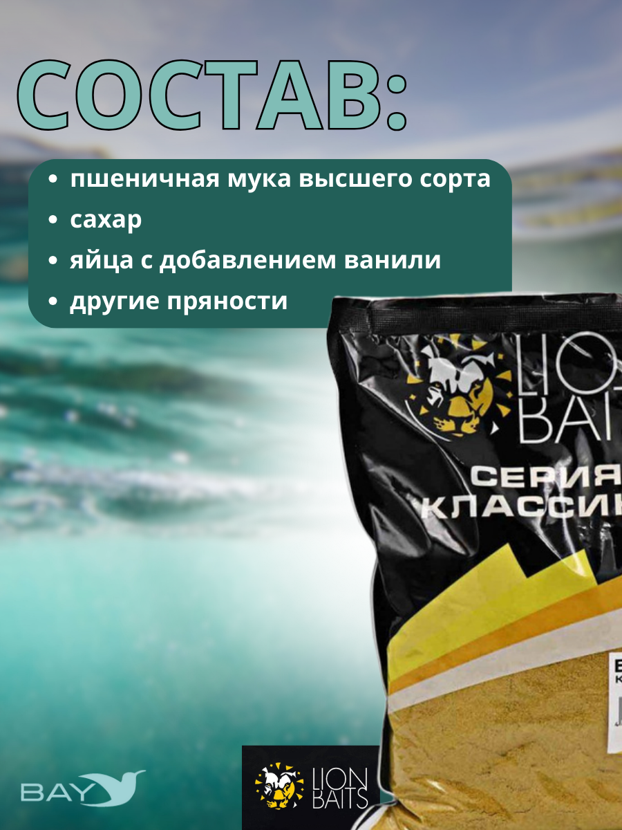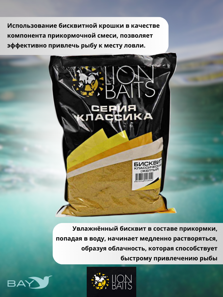 Бисквит - кондитерское тесто, приготовленное из пшеничной муки высшего сорта, сахара, яиц с добавлением ванили и других пряностей. Бисквит по праву называют королем выпечки, однако его питательные, вкусовые и физические свойства, отлично подходят и для использования в рыболовных прикормках. Молотый бисквит (крошка) активно используется рыбаками как добавка в состав смеси для прикармливания, в зависимости от условий рыбалки и вида рыбы, количество бисквитной крошки может варьироваться от 10 до 45%. Как показывает практика, использование бисквитной крошки в качестве компонента прикормочной смеси, позволяет эффективно привлечь рыбу к месту ловли. Увлажнённый бисквит в составе прикормки, попадая в воду, начинает медленно растворяться, образуя облачность, которая способствует быстрому привлечению рыбы.