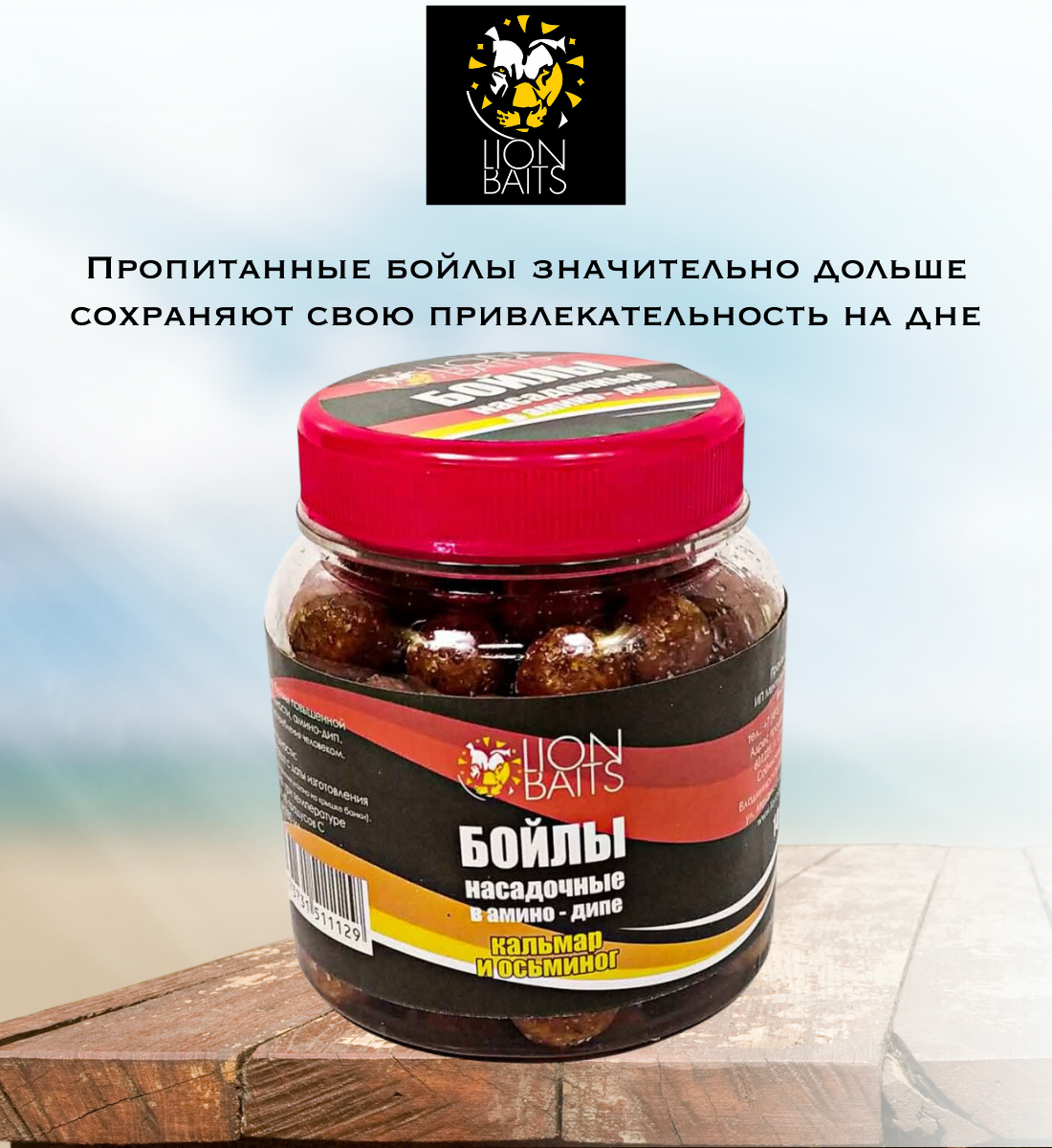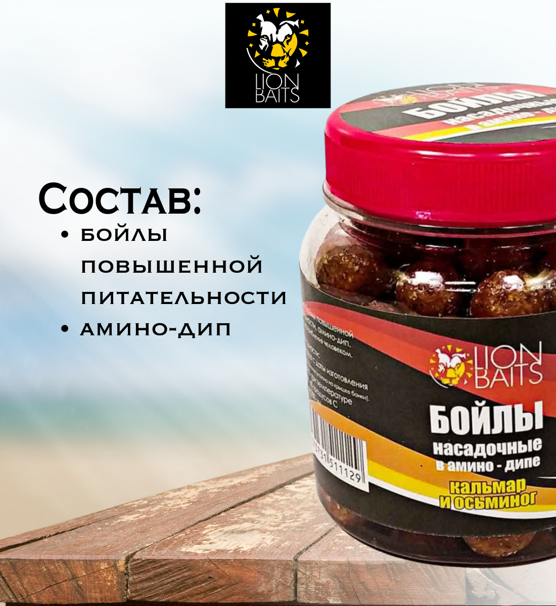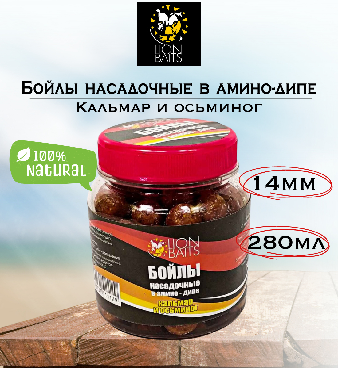 Lion Baits Бойлы насадочные в амино-дипе "Кальмар и осьминог" 14мм 280мл