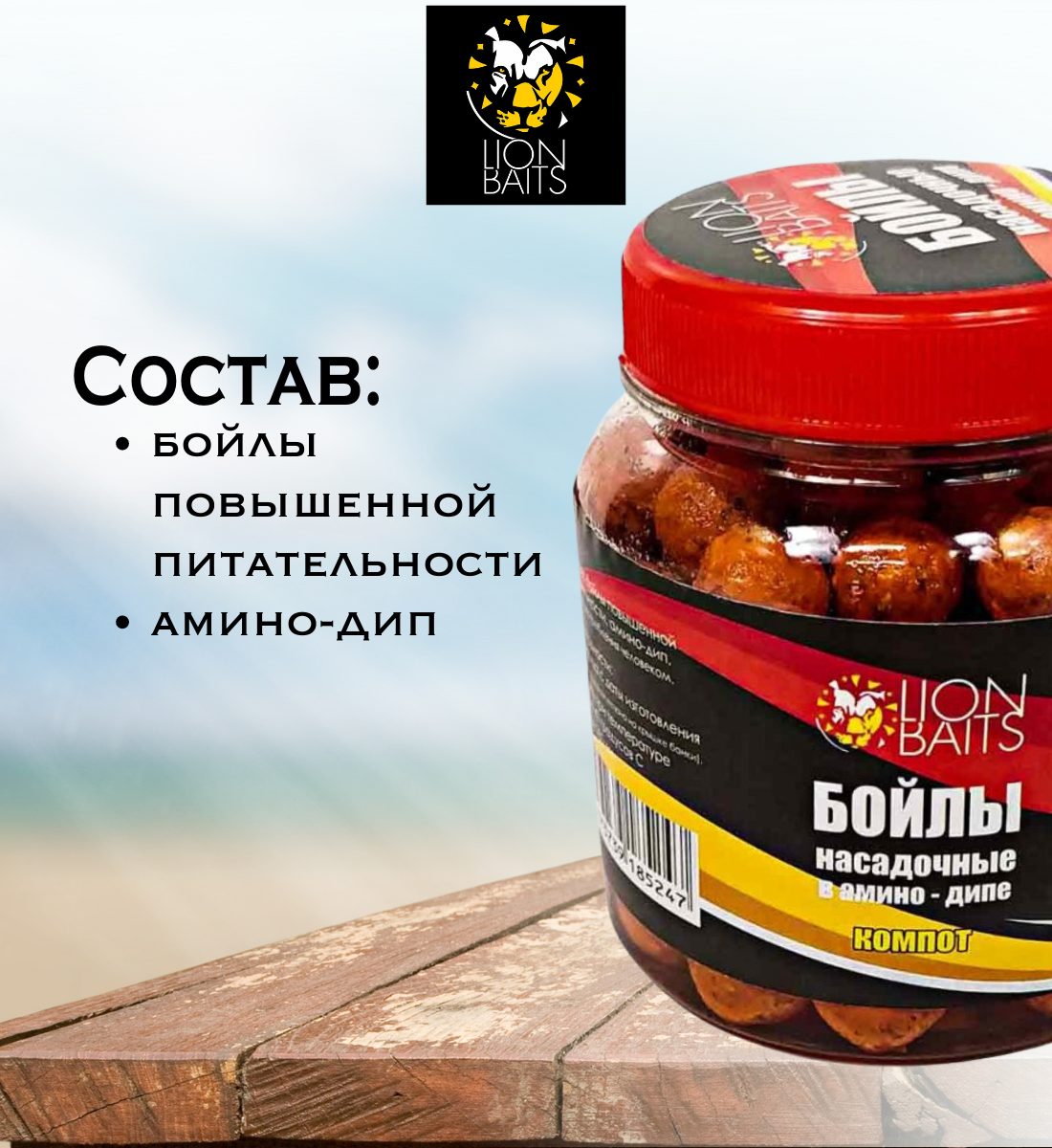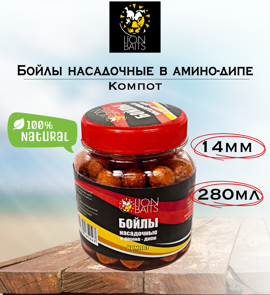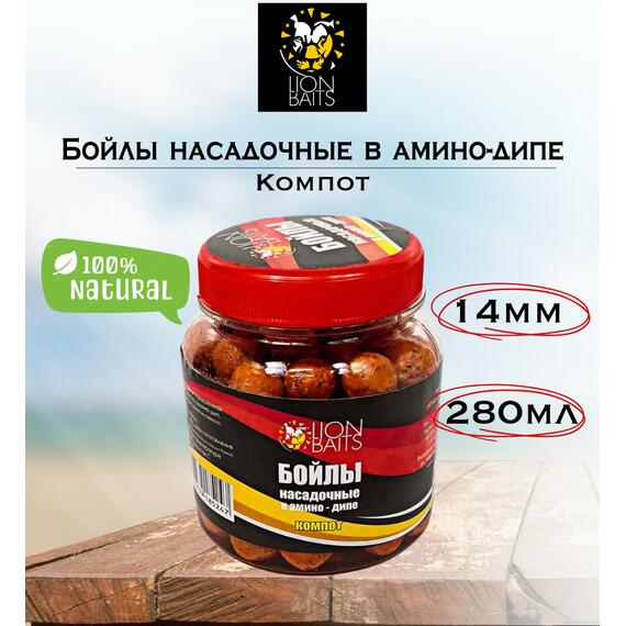 Lion Baits Бойлы насадочные в амино-дипе "Компот" 14мм 280мл