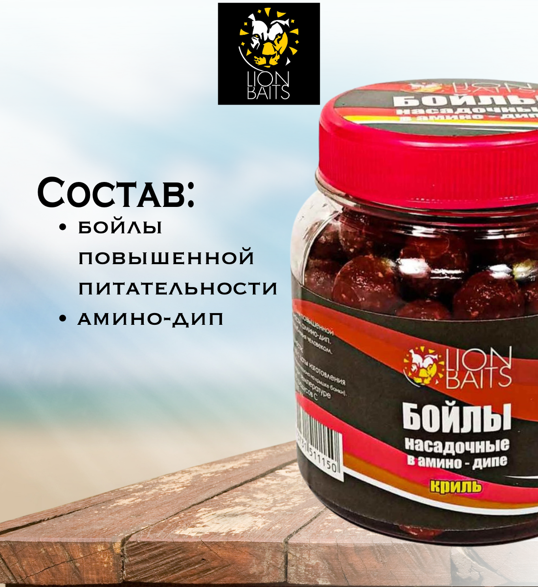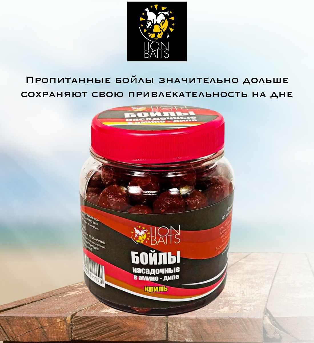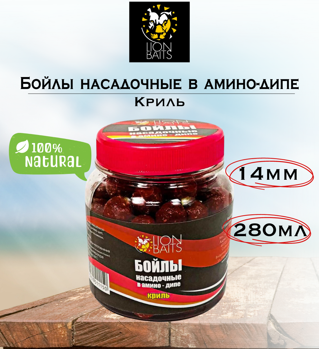 Lion Baits Бойлы насадочные в амино-дипе "Криль" 14мм 280мл