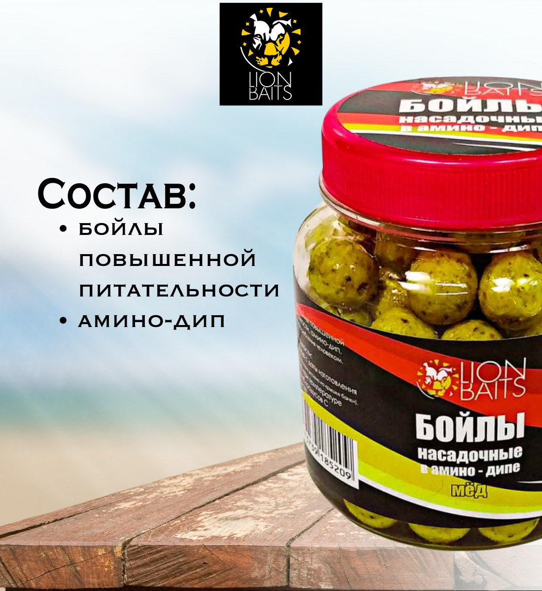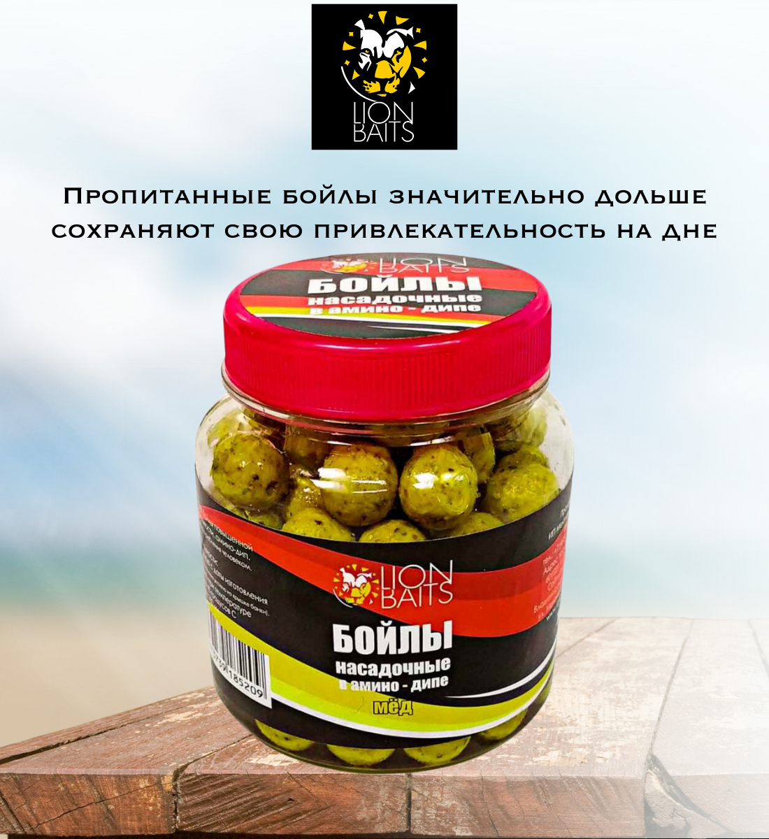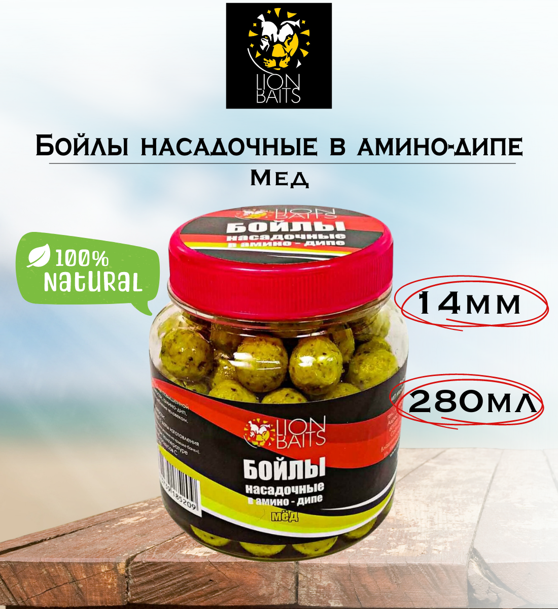 Lion Baits Бойлы насадочные в амино-дипе "Мед" 14мм 280мл